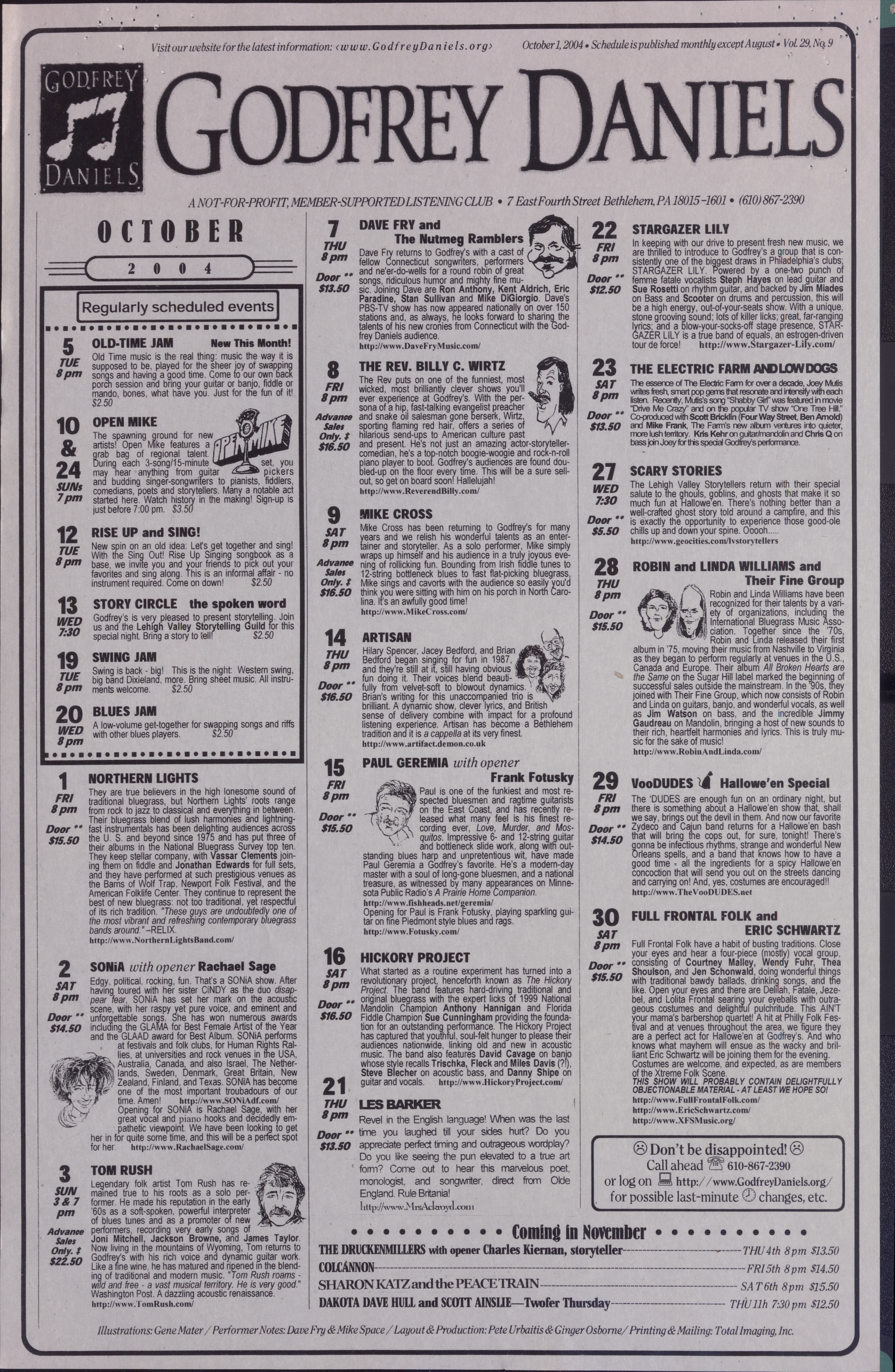 Godfrey Daniels Event Poster, October 2004