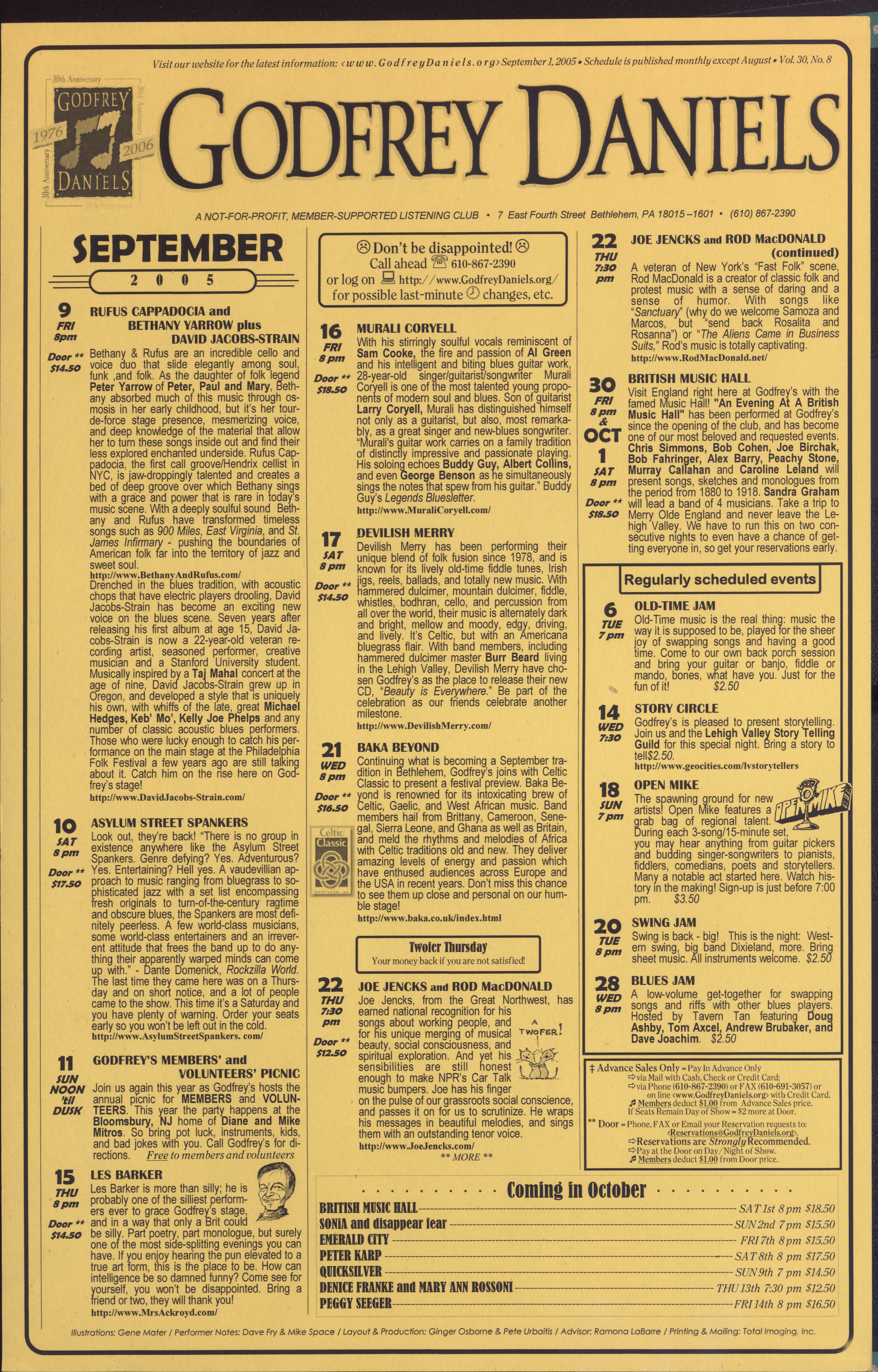 Godfrey Daniels Event Poster, September 2005