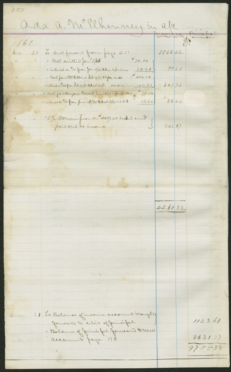 [Ledger] 1 January 1857 [to] 31 December 1861 [for] Ada McElhenney in Account with Clarence G. Mitchell / Ada McElhenney