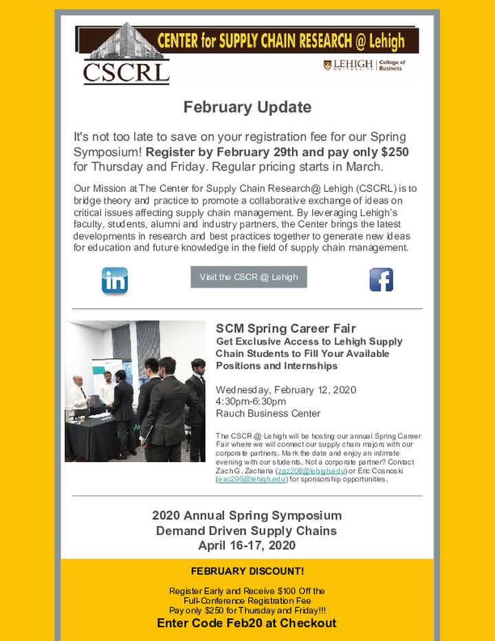 title = {Center for Supply Chain Research at Lehigh Newsletter, February 2020},