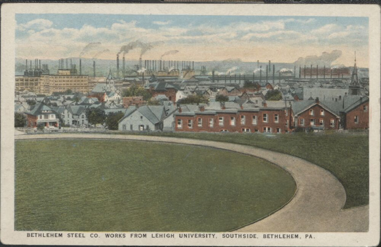 Bethlehem Steel Co. Works from Lehigh University, South Side, Bethlehem, PA. https://preserve.lehigh.edu/digital-special-collections/postcards/bethlehem-steel-co-works-lehigh-university-south-side-0.
