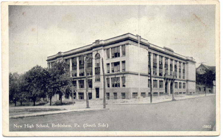 New High School, Bethlehem, Pa. (South Side). https://preserve.lehigh.edu/digital-special-collections/postcards/new-high-school-bethlehem-pa-south-side.