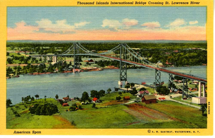 Thousand Islands International Bridge Crossing St. Lawrence River, 1940?. 1940, https://preserve.lehigh.edu/digital-special-collections/postcards/thousand-islands-international-bridge-crossing-st-lawrence-0.