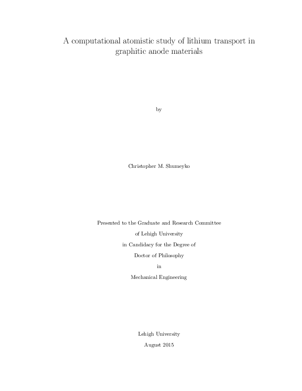 In this dissertation, atomistic simulations of Lithium transport into and through graphite grain boundaries are studied. Graphite is a commonly used negative electrode (anode) material in Lithium-ion batteries yet Li diffusion shows high levels of variability in a material that has been in use for the last 25 years. Researchers have used both experiments and computations to prove such variable diffusion and have proposed numerous hypotheses toward explaining the differences. It is known that intralayer transport is most rapid; the purpose of this study is to address secondary mechanisms for diffusion and therefore, cell charging. Although clues have led to the importance of defects such as grain boundaries in battery anodes, there has not yet been an exhaustive study, either experimentally or computationally, that addresses their role. Grain boundaries have widely been studied in metallic systems, but the covalent nature of graphite creates a two-fold motivation for this study. Not only is transport addressed, but also the underlying GB structure that abets and impedes such motion. The aforementioned studies are performed using Molecular Dynamics with both as-written and modified interatomic potentials. Potential optimizations and modifications were performed on existing models to fit the needs of this work. Carbon-Carbon interactions are well described, but Lithium-Carbon and Lithium-Lithium potentials were optimized using ab initio and experimental data of the lithium-graphite and lithium-graphene systems. From this, the modified potentials better represent the equilibrium structures of LixC6 albeit with limitations.Li diffusion from a free surface and into a graphite grain boundary fosters discussions on how surface structure influences transport rates. While no electrolyte or solid-electrolyte interface (SEI) are modeled here, it is thought that all grain boundaries would be subject to approximately the same level of SEI formation and therefore diffusive flux at the GBs will be similar. Therefore, any differences in intercalation rates that manifest provide additional reasoning to diffusional variability in graphite. While the results may not be absolute, the relativity is what is important here.Lastly, grain boundary diffusion is studied for the systems analyzed during intercalation simulations. While one boundary may have faster surface intercalation than another, there are underlying questions as to whether surface behavior correlates with or against internal behavior. Data is presented addressing collective mechanisms for diffusion as well as the role of inherent GB structure on mass transport. Finally, recommendations are made to connect this dissertation with continuum models in addition to advance into new material systems for energy storage applications.