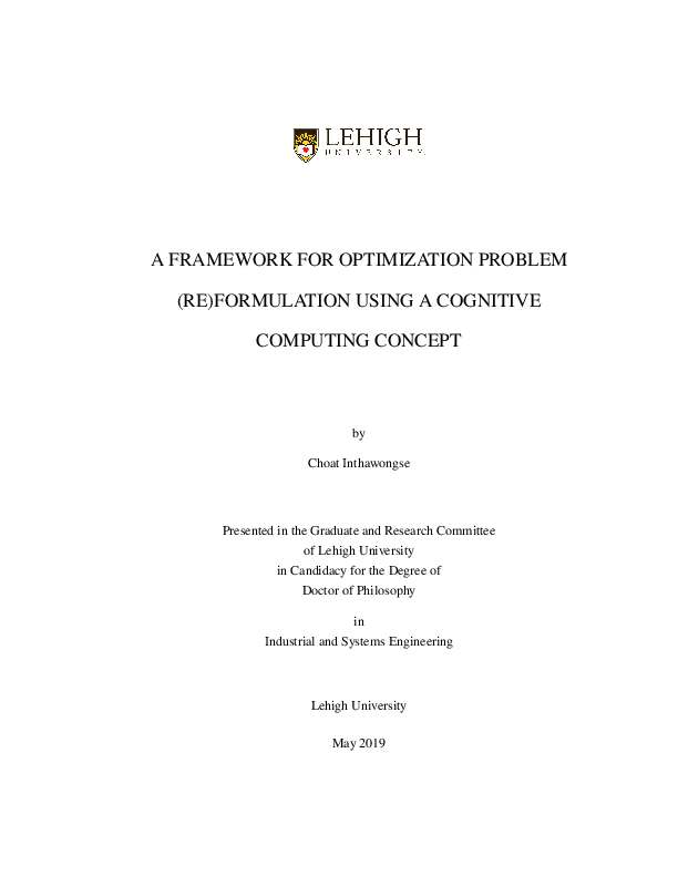 Inthawongse, Choat. A Framework For Optimization Problem (re)formulation Using A Cognitive Computing Concept. Jan. 2019, https://preserve.lehigh.edu/lehigh-scholarship/graduate-publications-theses-dissertations/theses-dissertations/framework.